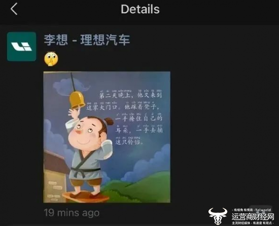 据悉,网上流传出一张据说是理想汽车创始人李想的朋友圈截图,图中李想分享了一张掩耳盗铃寓言故事的插画,并配了一个“嘘”的表情,疑似回应车企反对公布周榜事件。