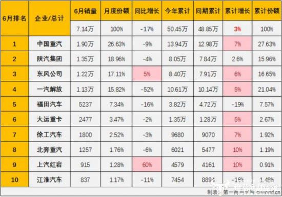 公开数据显示,6月份大运重卡的销量为2477辆,同比下滑了2%,在行业内排在第六位;2024年上半年,大运累计销售重卡1.35万辆,同比增长5%,累计市占率为2.67%。运营商财经网将持续关注大运汽车未来的发展情况。