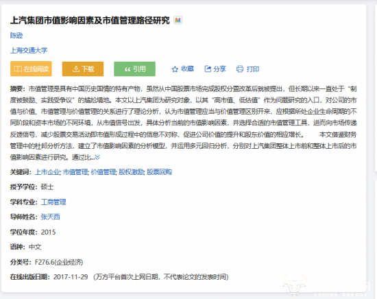 不过运营商财经网发现,有一篇名为《上汽集团市值影响因素及市值管理路径研究》的论文作者名字也是陈逊,该论文是上海交通大学“陈逊”在2015年度的工商管理硕士学位论文。如果两个陈逊是同一个人,那么说明其工商管理硕士学位是在职期间在上海交通大学攻读得来。