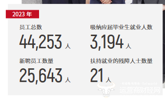 据奇瑞汽车官方报告显示,公司2023年有全职员工44253人。其中新聘员工数量25643人,占比约达57.95%;吸纳应届毕业生就业人数3194人,占比约7.22%;扶持就业的残障人士数量21人。