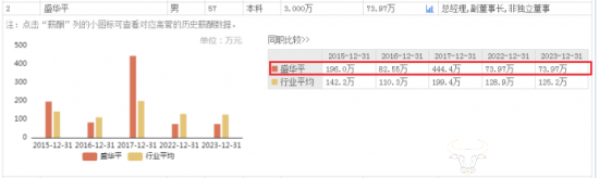 值得一提的是,根据东方财富网披露,盛华平2023年的年薪是73.97万元,2022年的年薪也是一样。而2017年盛华平的年薪高达444.4万元,和2017年比,盛华平的薪酬下降幅度较大,下降了370.43万元。