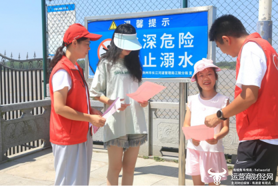 (湖北移动志愿者们耐心地向居民讲解防溺水知识)