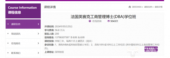 这究竟是什么博士呢?运营商财经网在网上查到了一个法国英赛克工商管理博士(DBA)学位班,该学位班学制三年,每两个月上课四天(周末),上课地址: 深圳校区,学习费用: 56.8万元。