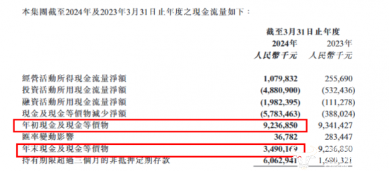 然而,引人注意的是,财报显示,截至2024年3月31日至年度,阿里健康年初现金及现金等价物约92.37亿元,年末现金及现金等价物约34.90亿元,怎么还减少了57.47亿呢?