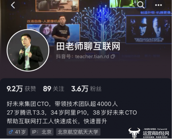 田密在社交平台抖音上的账号认证信息称“27岁腾讯T3.3”。据了解,在腾讯的职级体系中,T3级别通常被认为是高级工程师的级别,而T3.3是这级别中的高级阶段,被视为总监级别。有文章称他在腾讯工作时,曾担任腾讯地图的研发和产品总监。