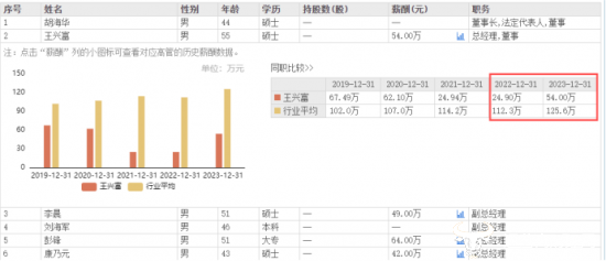 东方财富网显示,王兴富去年的薪酬为54万元,与上年相比上涨了29.1万元,在公司高管之中排在第二位,还是比较可观的。