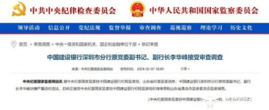 此外,值得一提的是,今年2月7日,建行深圳分行副行长李华峰涉嫌严重违纪违法被查。通报称,据中央纪委国家监委驻中国建设银行纪 检监 察组、山东省纪委监委消息:中国建设银行深圳市分行原副行长李华峰涉嫌严重违纪违法,目前正接受中央纪委国家监委驻中国建设银行纪 检监 察组纪律审查和山东省青岛市监 察委员会监 察调查。