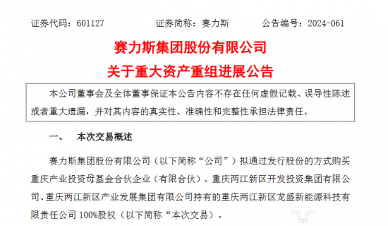 7月2日,公司董事会审议通过《关于购买资产的议案》,其控股子公司赛力斯汽车有限公司拟收购华为及其关联方持有的已注册或申请中的919项问界等系列文字和图形商标,以及44项相关外观设计专利,收购价款合计25亿元。