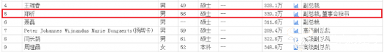 和其他几位副总裁对比,郑昕薪酬排在第二位,只有周理晶比他高9.6万。