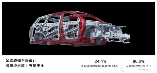 问界新M7 Pro主动被动都安全。被动安全方面,问界新M7 Pro采用全维超强车身设计,抗拉强度最高2000MPa的潜艇级热成型钢占比24.4%;高强度钢和铝合金占比达80.6%。其中,前乘员舱核心骨架结构100%采用潜艇级热成型钢,带来全维超强车身设计与五星安全。