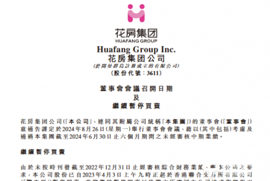 值得一提的是,此前由于未按时刊发截至2022年12月31日止年度之经审核综合年度业绩,花房集团已于去年4月3日起于联交所暂停买卖。几日前,花房集团再次发布公告,称将继续暂停买卖以待联交所确认公司达成复牌指引及其任何补充或修订。
