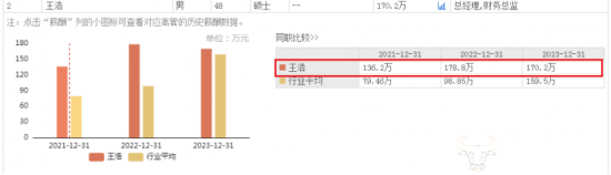 团队的执行肯定少不了公司总经理王浩的领导,然而他的薪酬不仅没增长,反而下降了一点,由2022年的178.8万元降至2023年的170.2万元。