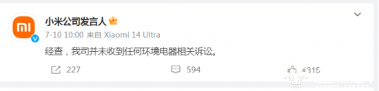 7月9日,格力发布微博称,收到了最高人民法院的法律文书,要求涉及侵权的米家小米电风扇不得再制造和销售,并向格力电器支付人民币185万元。
