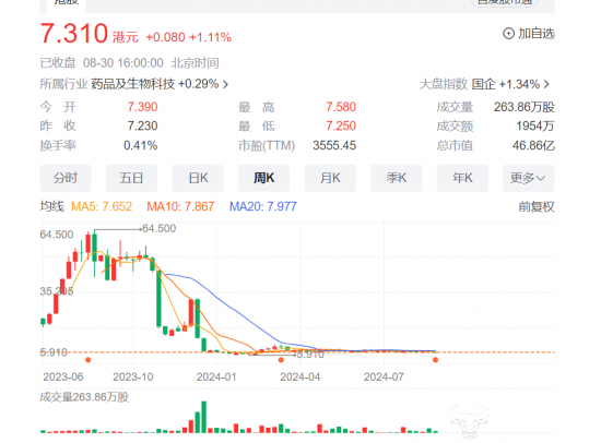 此后,在张步镇的带领下,药师帮历经8年于2023年成功登陆港交所。而随着公司的发展壮大,张步镇也凭借65亿的财富登上《2023年·胡润百富榜》。但这个榜单显然过时了,因为药师帮股价最高时64.5港元,而截止8月20日收盘时只有7.23港元,相当于最高点时的11%,公司市值也只有46.86亿港元,张步镇的股票市值也只能大幅缩水。
