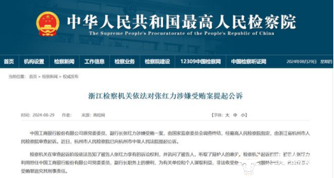 日前,中国工商银行原副行长张红力涉案进展被通报。经最高人民检察院指定,浙江省杭州市人民检察院近日已向杭州市中级人民法院提起公诉。